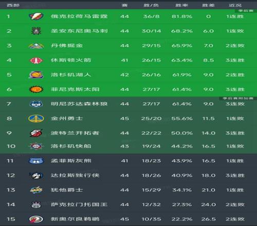 西部最新積分榜